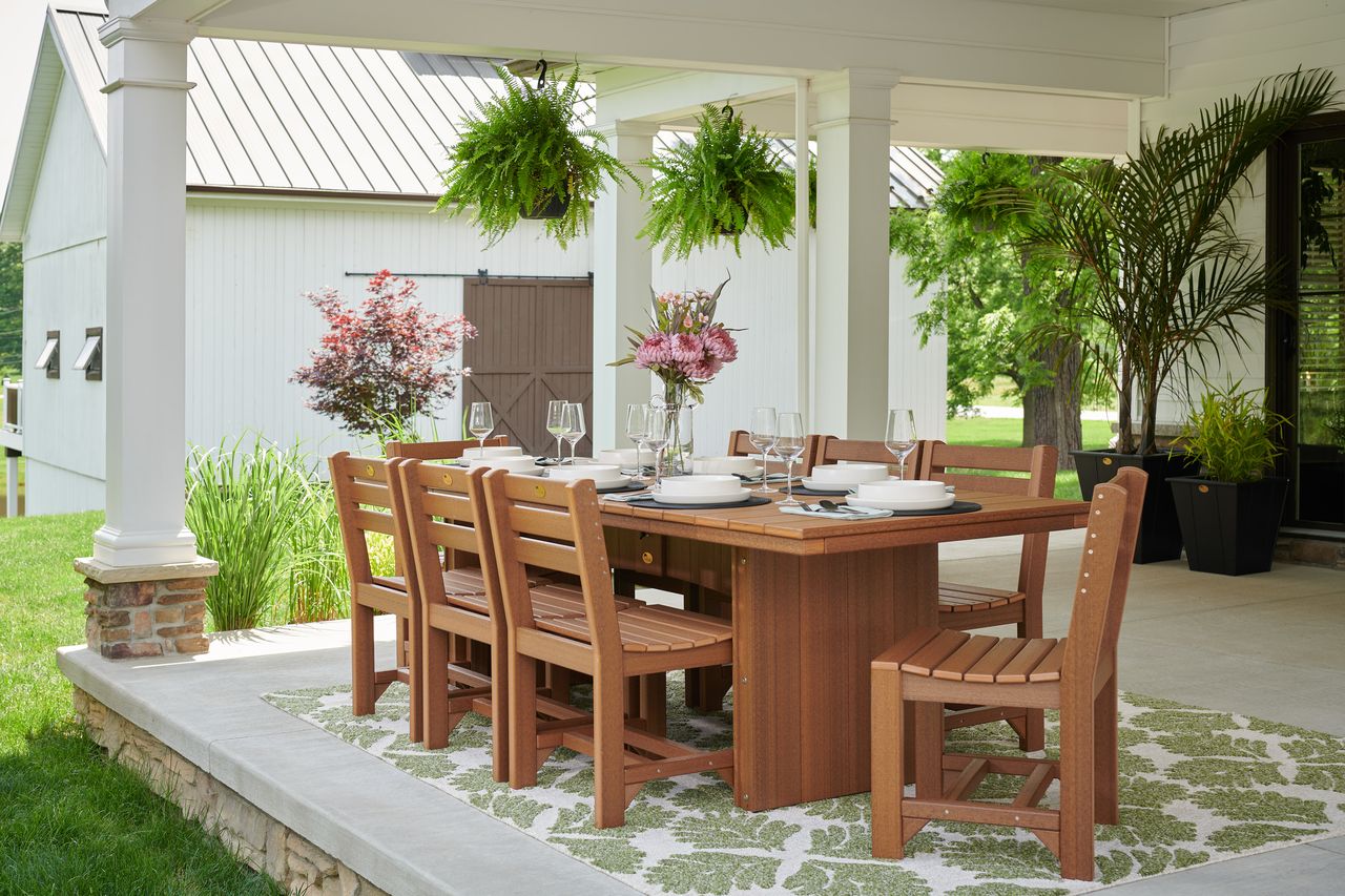 The Urban Dining Table makes a bold statement with its solid, slab legs and thick profile, giving it a feel that is both simple and substantial.